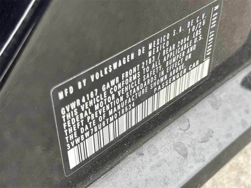 Jetta 1.5T Sport is nicely equipped with Titan Black Cloth, 4 Speakers, 4-Wheel Disc Brakes, ABS brakes, Active Blind Spot Monitor, Air Conditioning, Alloy wheels, Auto-dimming Rear-View mirror, Automatic temperature control, Brake assist, Bumpers: body-color, Cloth Seat Trim, Delay-off headlights, Driver door bin, Driver vanity mirror, Dual front impact airbags, Dual front side impact airbags, Electronic Stability Control, Emergency communication system: VW Car-Net Safe & Secure 5-year, Exterior Parking Camera Rear, Front anti-roll bar, Front Bucket Seats, Front Center Armrest, Front dual zone A/C, Front wheel independent suspension, Fully automatic headlights, Heated door mirrors, Heated Front Seats, Heated front seats, Illuminated entry, Leather Shift Knob, Leather steering wheel, Low tire pressure warning, Occupant sensing airbag, Outside temperature display, Overhead airbag, Overhead console, Panic alarm, Passenger door bin, Passenger vanity mirror, Power door mirrors, Power steering, Power windows, Radio data system, Radio: MIB3 Composition Color with 8 Touchscreen, Rain sensing wipers, Rear anti-roll bar, Rear reading lights, Rear seat center armrest, Rear window defroster, Remote keyless entry, Speed control, Speed-sensing steering, Split folding rear seat, Steering wheel mounted audio controls, Tachometer, Telescoping steering wheel, Tilt steering wheel, Traction control, Trip computer, Variably intermittent wipers, and Wheels: 17 2-Tone Machined Alloy. Price includes: $750 - Customer Bonus. Exp. 02/02/2026