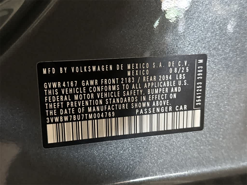Jetta 1.5T Sport is nicely equipped with Titan Black Cloth, 4 Speakers, 4-Wheel Disc Brakes, ABS brakes, Active Blind Spot Monitor, Air Conditioning, Alloy wheels, Auto-dimming Rear-View mirror, Automatic temperature control, Brake assist, Bumpers: body-color, Cloth Seat Trim, Delay-off headlights, Driver door bin, Driver vanity mirror, Dual front impact airbags, Dual front side impact airbags, Electronic Stability Control, Emergency communication system: VW Car-Net Safe & Secure 5-year, Exterior Parking Camera Rear, Front anti-roll bar, Front Bucket Seats, Front Center Armrest, Front dual zone A/C, Front wheel independent suspension, Fully automatic headlights, Heated door mirrors, Heated Front Seats, Heated front seats, Illuminated entry, Leather Shift Knob, Leather steering wheel, Low tire pressure warning, Occupant sensing airbag, Outside temperature display, Overhead airbag, Overhead console, Panic alarm, Passenger door bin, Passenger vanity mirror, Power door mirrors, Power steering, Power windows, Radio data system, Radio: MIB3 Composition Color with 8 Touchscreen, Rain sensing wipers, Rear anti-roll bar, Rear reading lights, Rear seat center armrest, Rear window defroster, Remote keyless entry, Speed control, Speed-sensing steering, Split folding rear seat, Steering wheel mounted audio controls, Tachometer, Telescoping steering wheel, Tilt steering wheel, Traction control, Trip computer, Variably intermittent wipers, and Wheels: 17 2-Tone Machined Alloy. Price includes: $750 - Customer Bonus. Exp. 02/02/2026