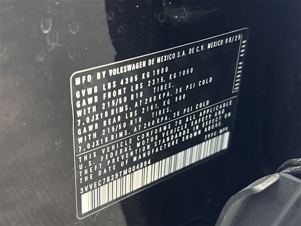 Taos 1.5T SE is nicely equipped with 4-Wheel Disc Brakes, 6 Speakers, ABS brakes, Active Blind Spot Monitor, Air Conditioning, Alloy wheels, AM/FM radio: SiriusXM with 360L, Auto High-beam Headlights, Automatic temperature control, Brake assist, Bumpers: body-color, Cloudtex and Cloth Seating Surfaces, Compass, Delay-off headlights, Driver door bin, Driver vanity mirror, Dual front impact airbags, Dual front side impact airbags, Electronic Stability Control, Emergency communication system: VW Car-Net Safe & Secure 5-year, Exterior Parking Camera Rear, Front anti-roll bar, Front Bucket Seats, Front Center Armrest, Front dual zone A/C, Front reading lights, Front Strut Rear Torsion Beam Suspension, Front wheel independent suspension, Fully automatic headlights, Heated door mirrors, Heated Front Bucket Seats, Heated front seats, Heated steering wheel, Illuminated entry, Leather Shift Knob, Low tire pressure warning, Occupant sensing airbag, Outside temperature display, Overhead airbag, Overhead console, Panic alarm, Passenger door bin, Passenger vanity mirror, Power door mirrors, Power driver seat, Power steering, Power windows, Radio data system, Radio: MIB3 Composition Media AM/FM/HD, Rain sensing wipers, Rear anti-roll bar, Rear seat center armrest, Rear window defroster, Rear window wiper, Remote keyless entry, Security system, Speed control, Speed-sensing steering, Split folding rear seat, Spoiler, Steering wheel mounted audio controls, Tachometer, Telescoping steering wheel, Tilt steering wheel, Traction control, Trip computer, Variably intermittent wipers, and Wheels: 18 2-Tone Machined Alloy. Price includes: $500 - Customer Bonus. Exp. 02/02/2026