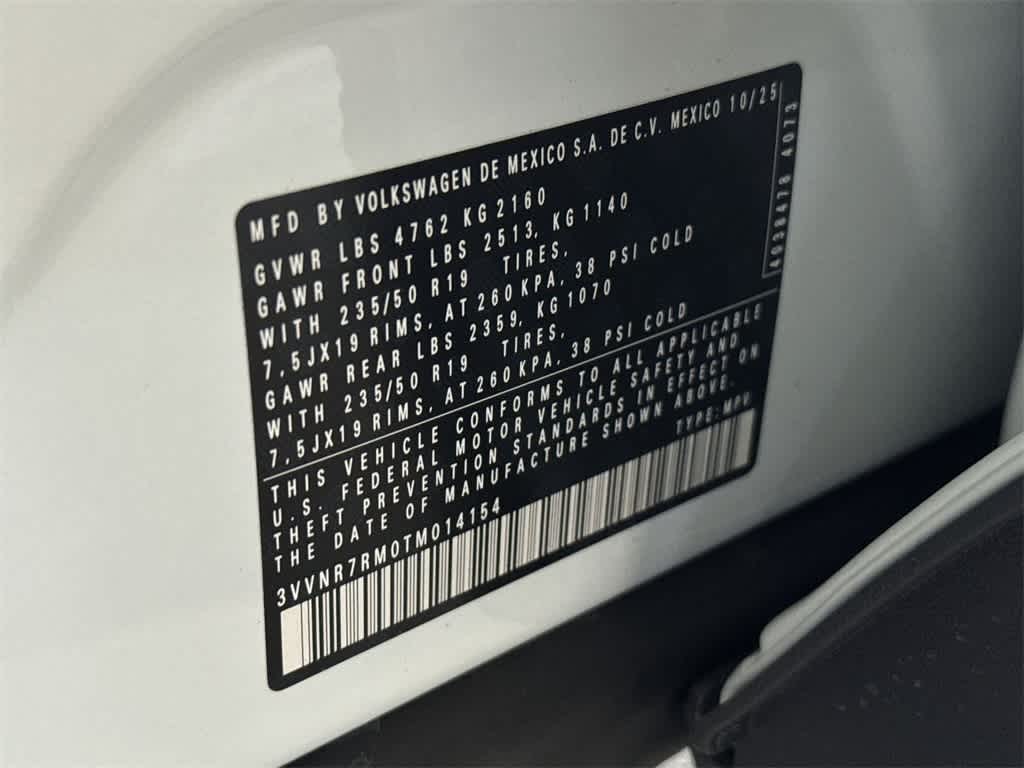 Tiguan 2.0T SE is nicely equipped with 4-Wheel Disc Brakes, 4-Wheel Independent Suspension, 7 Speakers, ABS brakes, Air Conditioning, Alloy wheels, AM/FM radio: SiriusXM with 360L, Auto High-beam Headlights, Auto-dimming Rear-View mirror, Automatic temperature control, Brake assist, Bumpers: body-color, Compass, Delay-off headlights, Driver door bin, Driver vanity mirror, Dual front impact airbags, Dual front side impact airbags, Electronic Stability Control, Emergency communication system, Exterior Parking Camera Rear, Four wheel independent suspension, Front anti-roll bar, Front Bucket Seats, Front Center Armrest, Front dual zone A/C, Front reading lights, Fully automatic headlights, Heated door mirrors, Heated Front Seats, Heated front seats, Illuminated entry, Knee airbag, Leather Shift Knob, Low tire pressure warning, Occupant sensing airbag, Outside temperature display, Overhead airbag, Overhead console, Panic alarm, Passenger door bin, Passenger vanity mirror, Perforated V-Tex Leatherette Seating Surfaces, Power door mirrors, Power driver seat, Power Liftgate, Power steering, Power windows, Radio data system, Radio: MIB4 Composition Media Touchscreen with AM/FM, Rain sensing wipers, Rear anti-roll bar, Rear reading lights, Rear seat center armrest, Rear side impact airbag, Rear window defroster, Rear window wiper, Remote keyless entry, Security system, Speed control, Speed-sensing steering, Split folding rear seat, Spoiler, Steering wheel mounted audio controls, Tachometer, Telescoping steering wheel, Tilt steering wheel, Traction control, Trip computer, Turn signal indicator mirrors, Variably intermittent wipers, and Wheels: 19 2-Tone Machined Alloy. Price includes: $1000 - Customer Bonus. Exp. 02/02/2026