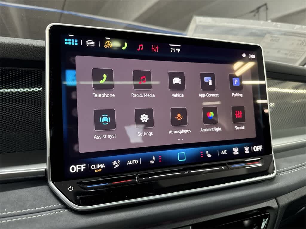 - MIB4 Composition Media Touchscreen w/AM/FM Radio -inc: WMA/MP3/FLAC player w/USB, 12.9" touchscreen multi-function center display w/backlit sliders, voice control, 6 speakers + center speaker (7 speakers total) sound system, capability for in-vehicle 4G LTE enabled Wi-Fi (cellular data plan required; includes limited trial), capability for connected vehicle services (capabilities for services vary; requires enrollment or subscription), Bluetooth® connectivity (for compatible devices), SiriusXM w/360L (w/3-month free trial subscription; 360L services require acceptance of Car-Net terms), App-Connect smartphone integration (w/Apple CarPlay, Android Auto and MirrorLink) via USB, wireless App-Connect smartphone integration (for compatible devices) w/multi-phone pairing capability, 45W fast charging (for compatible mobile phones and accessories) via USB in both rows and Qi wireless inductive charger, cooled, up to 15W (for compatible mobile phones and accessories) All connected vehicle services are subject to terms and limitations. Some services require a paid subscription. See dealer or vw.com/connected for important details.
