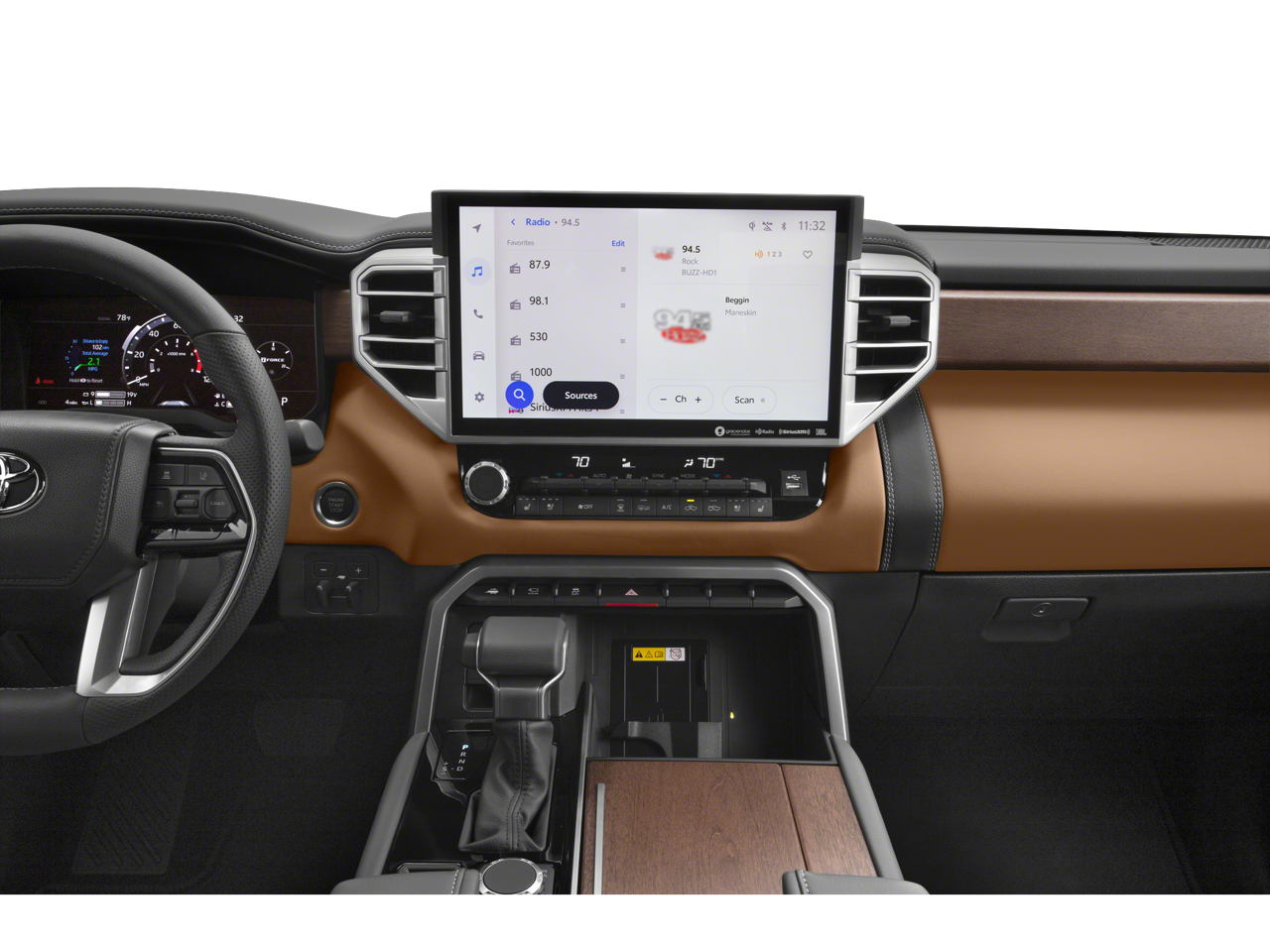 - Radio: AM/FM -inc: 14-inch touchscreen audio multimedia, Android Auto and Apple CarPlay compatible and SiriusXM w/3-month platinum plan trial subscription, See toyota.com/audio-multimedia for details, Connected services - Safety Connect w/up to 10-year trial, remote connect w/1-year trial, drive connect w/1-year trial, service connect w/up to 10-year trial, Wi-Fi connect w/up to 3 GB within 1-month trial, See toyota.com/connected-services for details